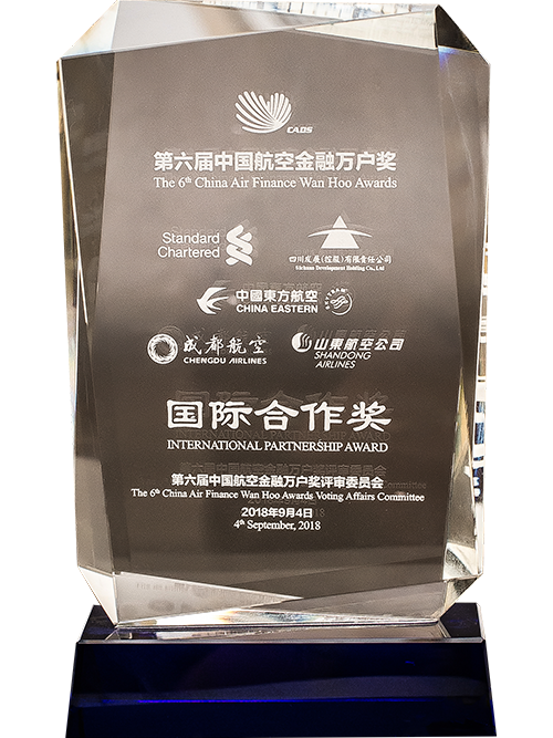 在第六屆中國(guó)航空金融萬(wàn)戶獎(jiǎng)評(píng)審中榮獲“國(guó)際合作獎(jiǎng)”
